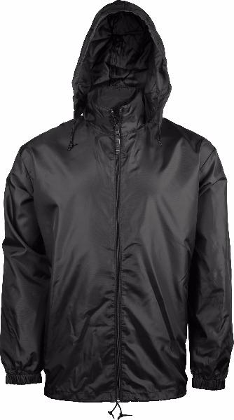 100% polyester. Fermeture zipp‚e ton sur ton. Capuche dans le col avec patte auto-agrippante. 2 poches zipp‚es devant. Bas de manches ‚lastiqu‚. Repliable dans sa poche sur la base du systŠme K-Way©.