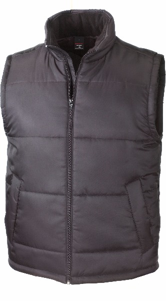 Extérieur 100% polyester 210T enduction acrylique. Doublure garnie de ouate 100% polyester. Séchage rapide, léger, coupe-vent et résistant à l'eau. Idéal en superposition avec une polaire. Fermeture zippée avec rabat intérieur de protection. Emmanchures échancrées pour plus de confort. 2 poches + 1 poche intérieure. Ouverture zippée dans la couture latérale gauche pour personnalisation.