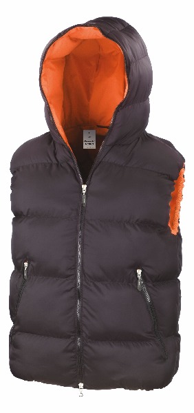 Hydra-Dri 50D, 100% nylon microfibre avec enduction (140 g/m²). Bodywarmer déperlant, coupe-vent et léger. Capuche zippée et intégrée au col. 2 poches côté zippées. Système de resserrage par coutures froncées aux emmanchures et au bas du vêtement. Marquage 'Urban Outdoor'.