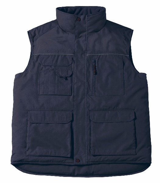 Extérieur : 100% polyester Ripstop. Résistant au vent et déperlant intérieur : 100% doublure en polyester rembourré, doublure des poches et du col en laine micropolaire. Fermeture éclair avant intégrale avec mentonnière, curseur ergonomique avec rabat 3 Velcro et 2 pressions. 11 poches multifonctionnelles (2 poches avant multi-usage, 2 poches réchauffe-mains, 2 poches poitrine, 1 poche téléphone mobile, 3 pochettes pour stylo et 1 poche portefeuille intérieure). Emmanchures profondes avec protection contre le vent, élastiquées. Col ouvert avec panneau dorsal plus long. Zip dans le bas de la doublure et sur la poche poitrine gauche.