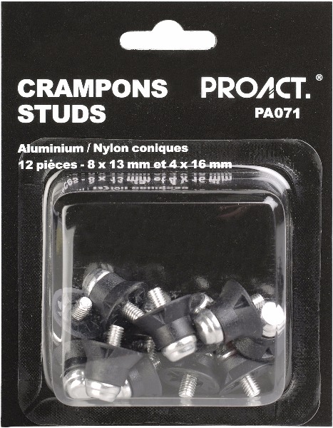Boite de crampons MIXTEs alu/nylon conique pour la pratique du football sur terrain gras. Livrés sous blister.