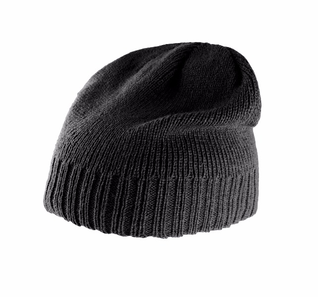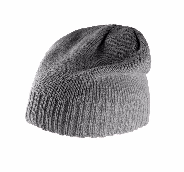 100% acrylique. Bonnet en maille tricotée avec bordure cotelée.