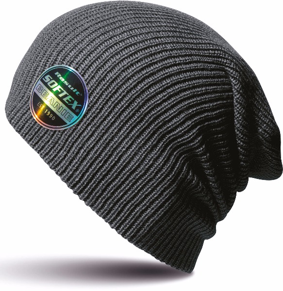 100% acrylique. Tricot doublé. Style "bonnet long".