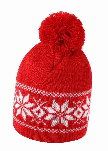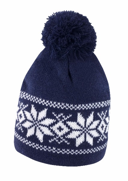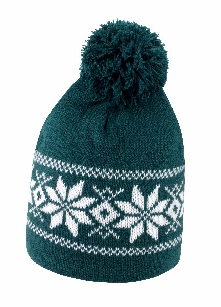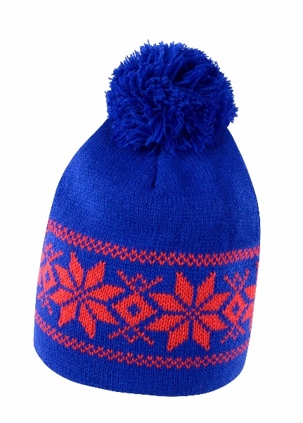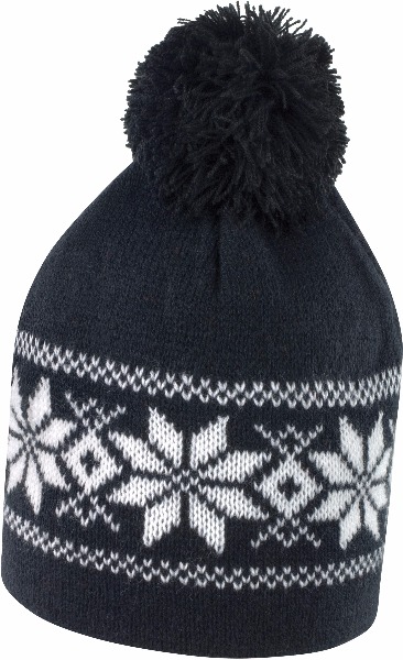 100% polyacrylique. Bonnet à pompon avec motifs constrastés.