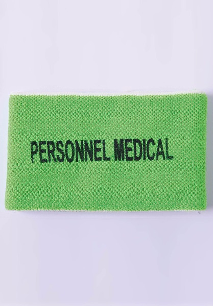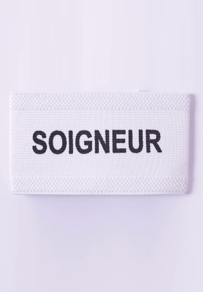 Brassards unis ou bicolores avec velcro. Disponible en White/Royal Blue pour Capitaine, White pour Soigneur, Red pour Entraîneur, Yellow pour Adjoint-terrain et Green pour Personnel médical.