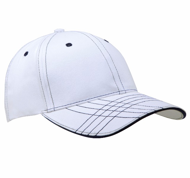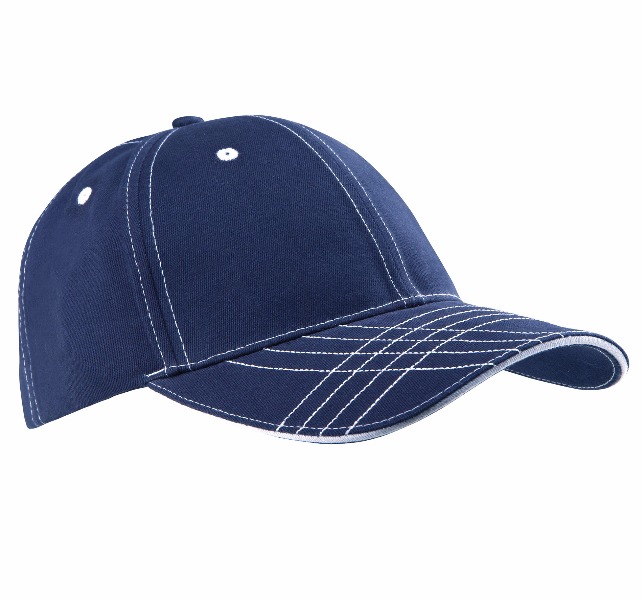 100% coton sergé brossé. 6 panneaux. Oeillets et surpiqûres contrastés. Bande de transpiration en coton. Fermeture réglable par boucle métallique.