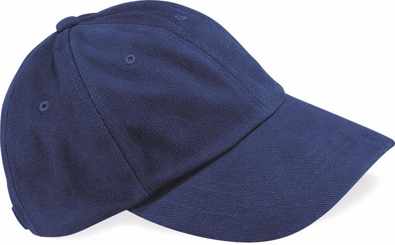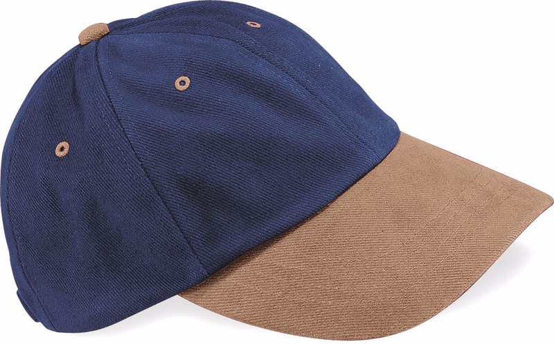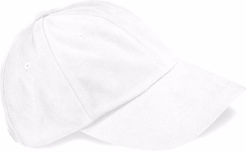 100% coton drill brossé, modèle 6 panneaux, visière préformée, sangle de serrage avec boucle métallique et passant, œillets de ventilation.