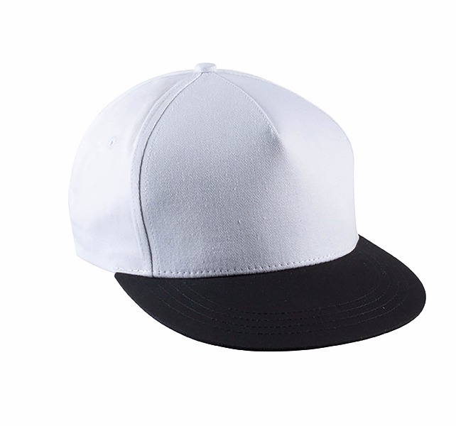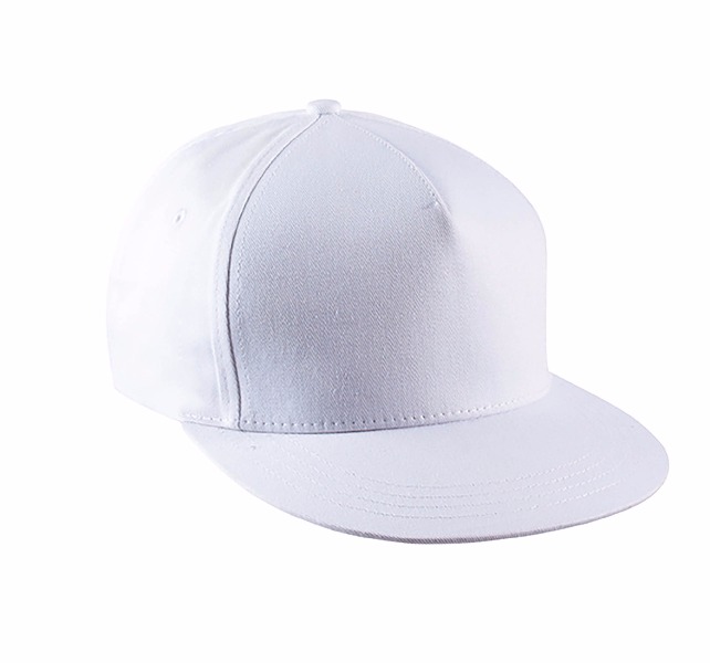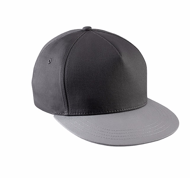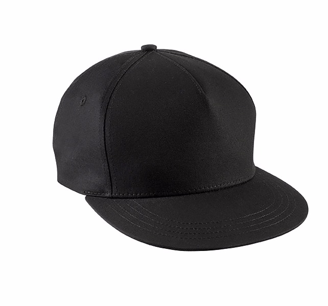 100% coton sergé. 5 panneaux. Visière plate. Languette de réglage en plastique.