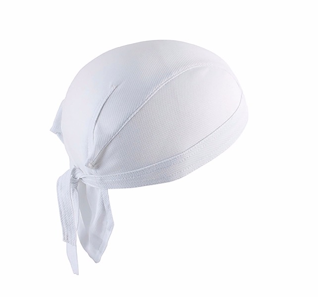 100% filet polyester respirant. Tissu à séchage rapide "Quick Dry". S'attache à l'arrière à l'aide de deux lanières.