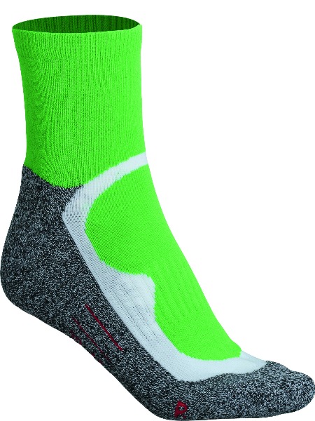 Chaussettes de sport. Coutures plates (main liée) aux orteils. Motif tricolor. Plante des pieds renforcée. Tricotage ergonomique. 76 % polyester 22 % polyamide 2 % élasthanne. Cooldry : Respirant et séchage rapide .