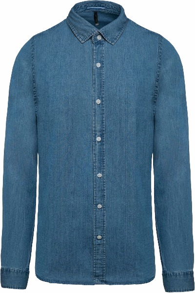 100% coton chambray. Toile légère effet denim. Matière souple et confortable. Coupe ajustée mode. Col avec bande fantaisie intérieure. Boutons contrastés. Poignets réglables.