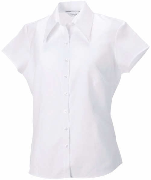 54 % coton / 46 % Tencel® Lyocell sergé. Véritable facilité d'entretien, repassage minimum. Coupe ajustée avec des pinces au niveau du buste, en bas et dans le dos. Long col élégant et confortable. Empiècement avant étroit à 8 boutons. Contraste de boutons nacrés argentés sur chemise couleur et de boutons blancs sur chemise blanche. Panneau à soufflet simple épaisseur sur la couture latérale en bas. Contraste avec le ruban en satin rose le long de la couture du col (satin blanc pour coloris White).