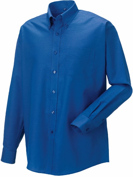 70% coton Oxford / 30% polyester. Véritable facilité d'entretien, repassage minimum. Pointes de col à baleine boutonnées. Empiècement arrière avec 2 plis latéraux. Poche de poitrine sur le côté gauche. Poignets réglables arrondis à 2 boutons et patte capucin à bouton unique.