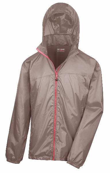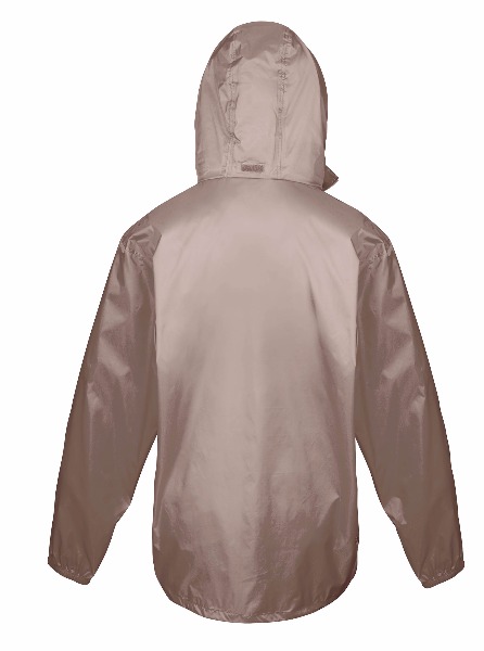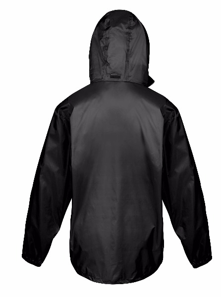 100% nylon imperméable 3000 mm et respirant 3000 g/m²/24h. Coutures thermocollées. Fermeture zippée contrastée à l'avant et cordon de serrage au bas du vêtement. Poignets et capuche élastiqués. Poches latérales dont une zippée. Étiquette imprimée dans le col et patte de suspension cousue à l'intérieur. Se replie dans un sac de rangement coordonné.