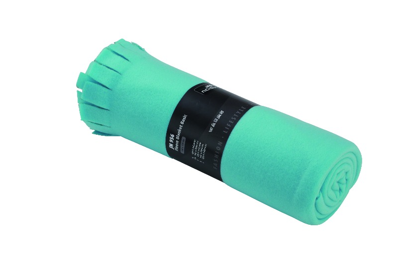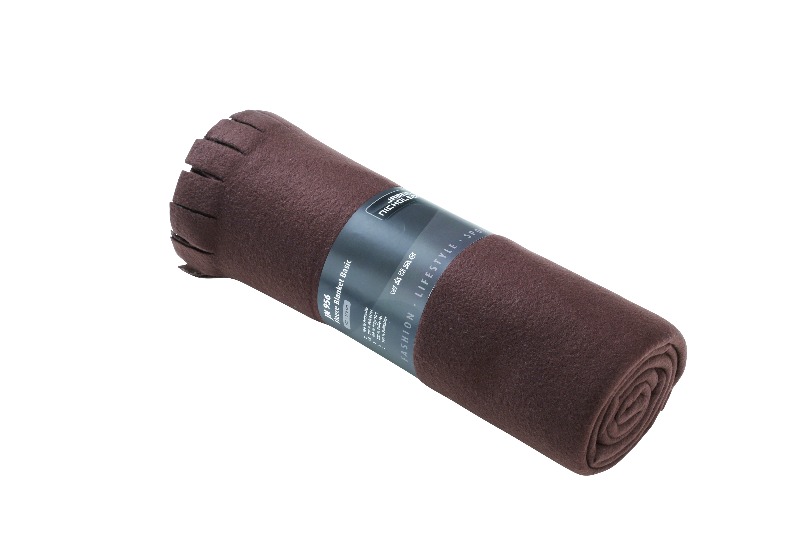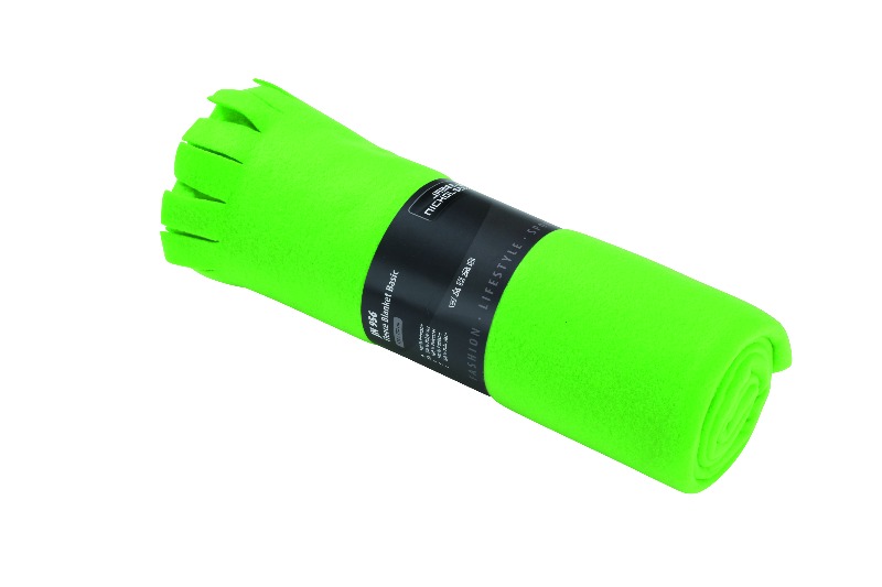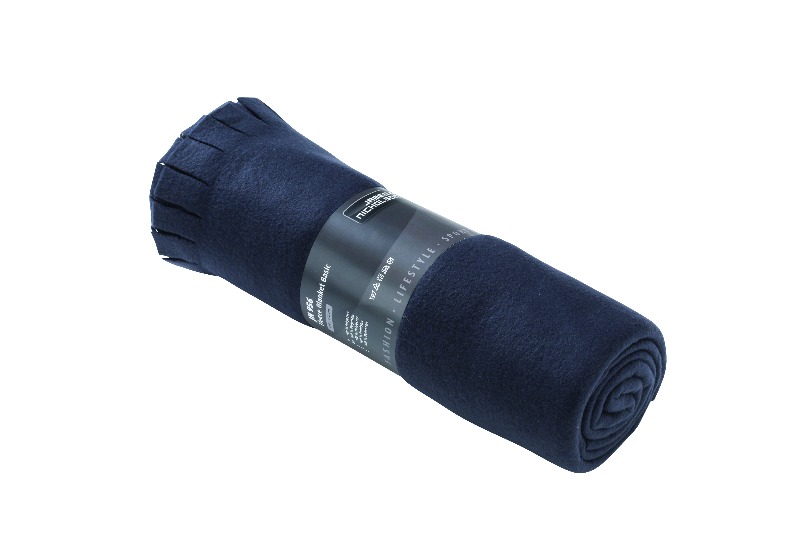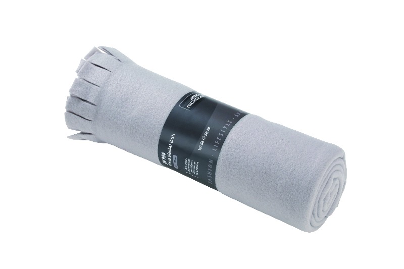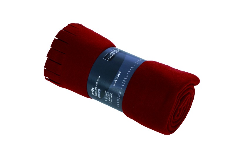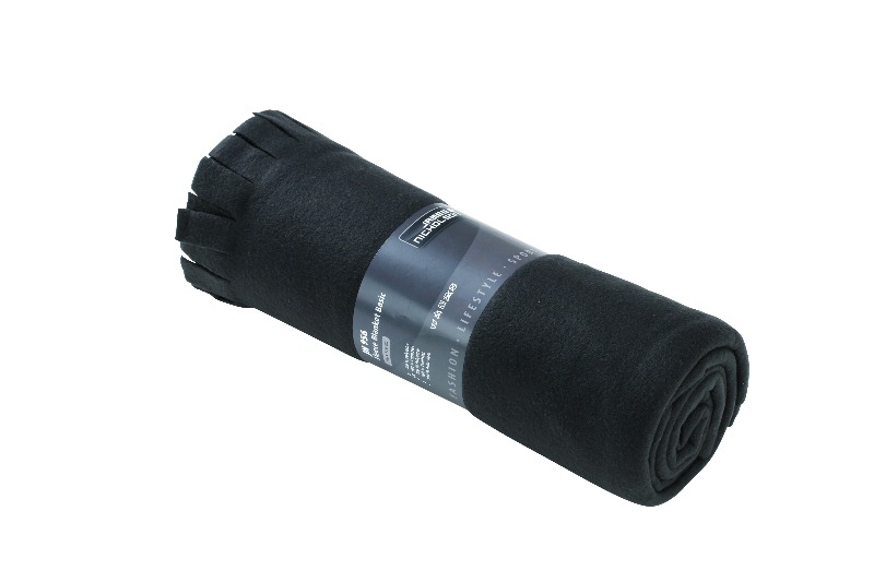 Couverture polaire avec franges. Cerclage cartonn‚. Dimension : 130 x 170 cm. 100 % polyester micropolaire. Poids : 220 gr/mý.