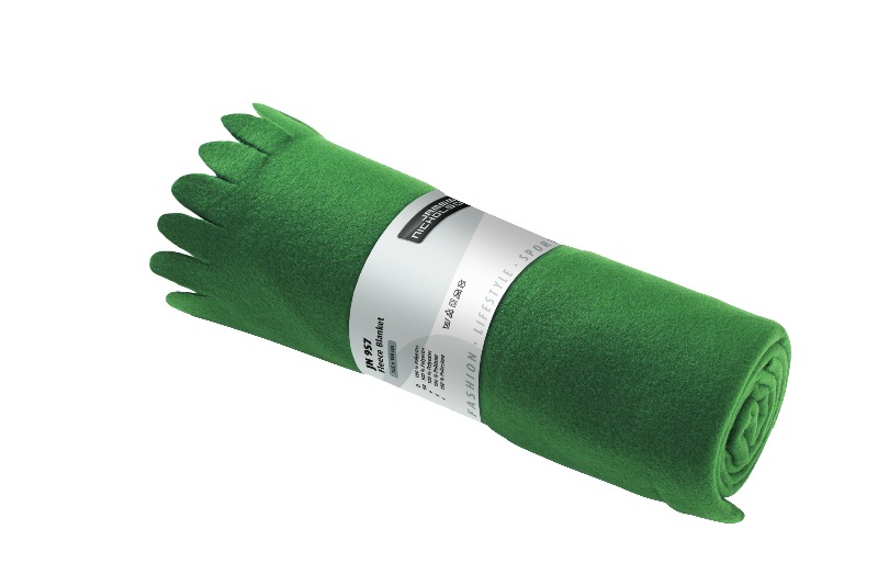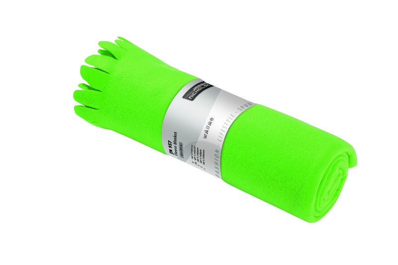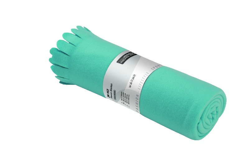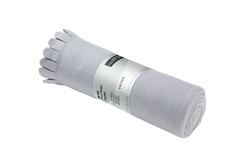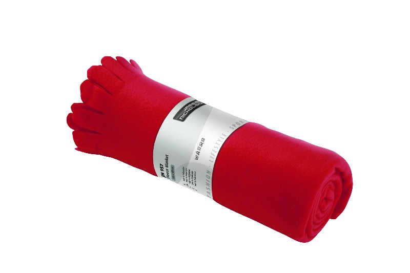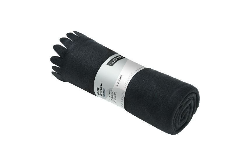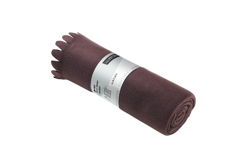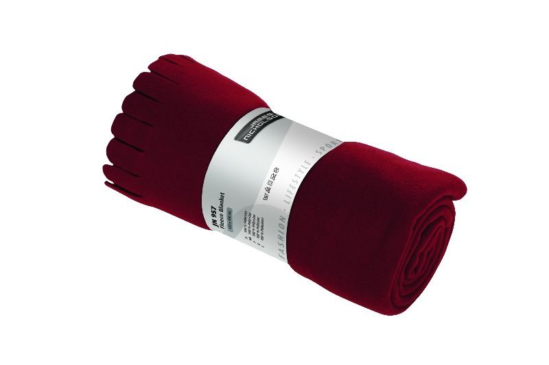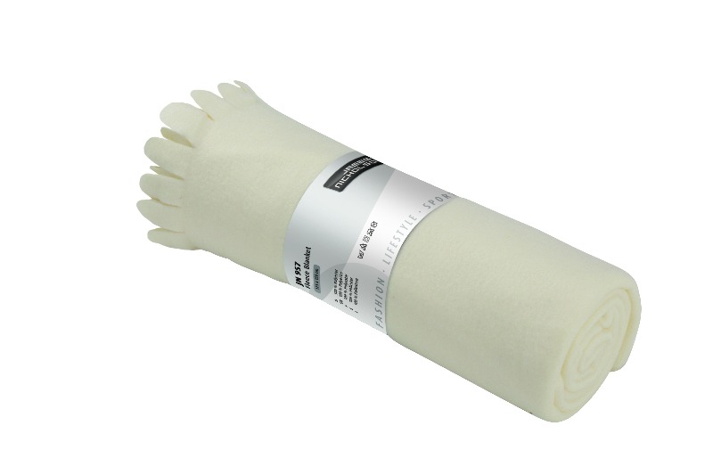 Couverture polaire avec franges. Cerclage cartonn‚. Dimension : 125 x 150 cm. 100 % polyester. Poids : 200 gr/mý.