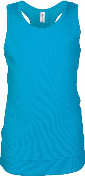 100% coton. C“te 1x1. Dos nageur. Finition double aiguille.
