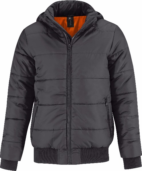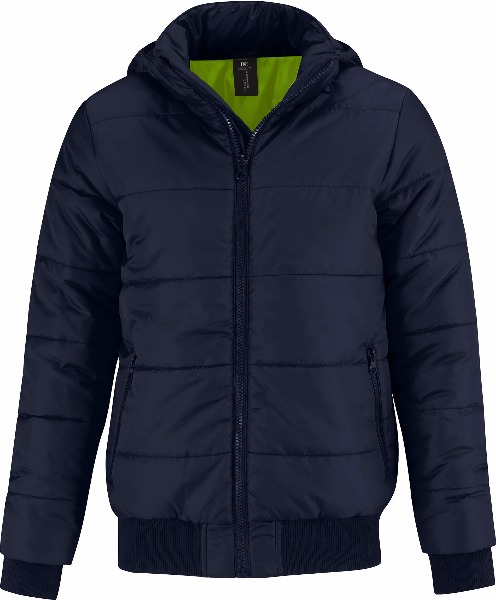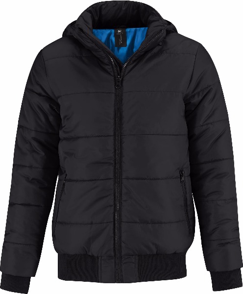 Couche extérieure : taffetas 300T 100% polyester avec enduit acrylique. Couche intérieure : taffetas rembourré 100 % polyester. Capuche rembourrée détachable et ajustable et patte intérieure anti-intempéries. 2 poches avant zippées et 1 poche portefeuille intérieure. Poignets et bord inférieur en coton/élasthanne côte 2x2. Zip SBS ton sur ton. Style « bomber » contemporain et coupe "retail" avec couleur extérieure unie et doublure intérieure contrastée. Accès facile pour décoration.