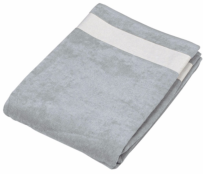 100% coton velours. Bande unie blanche de 5,5 cm aux 2 extrémités.