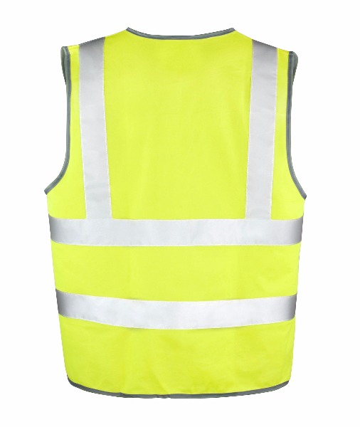100% polyester. Certifié EN ISO 20471 catégorie 2. Deux bandes de sécurité verticales au niveau des épaules et deux bandes horizontales sur le corps. Coupe ample pour pouvoir porter le gilet au dessus des autres vêtements. Bords gansés en polyester gris. Bande de sécurité de 50mm cousue. Ce vêtement doit être porté fermé et être maintenu propre pour conserver son efficacité.