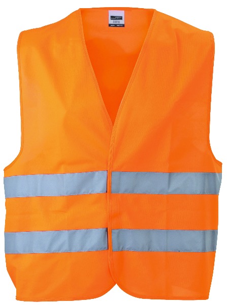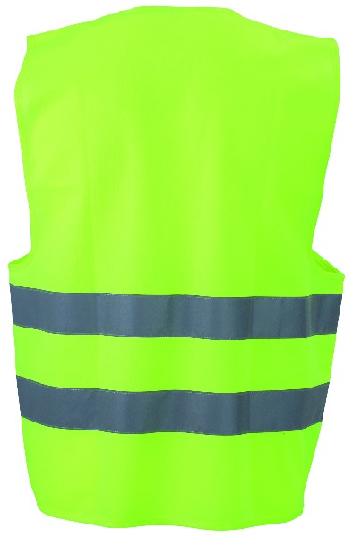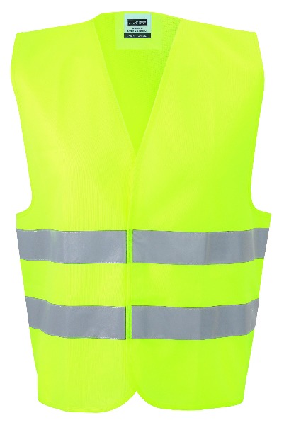 Gilet de sécurité Unisex. Sans manches. Fermeture velcro. 2 Bandes réfléchissantes horizontales certifiées EN471. 100 % polyester.