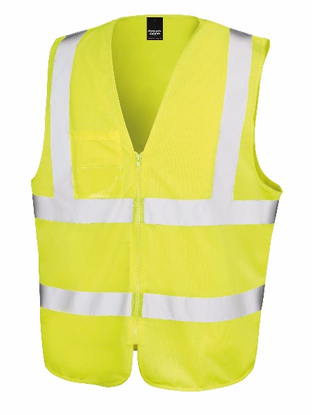 100% polyester. Certifié EN ISO 20471:2013 catégorie 2. Fermeture zippée et poche avant porte-badge. Deux bandes de sécurité verticales au niveau des épaules et deux bandes horizontales sur le corps. Coupe ample pour pouvoir porter le gilet au dessus des autres vêtements. Bords gansés en polyester gris. Bande de sécurité de 50mm cousue. Ce vêtement doit être porté fermé et être maintenu propre pour conserver son efficacité.