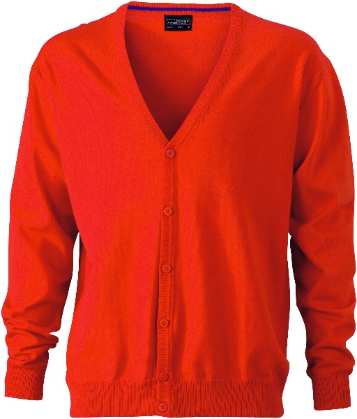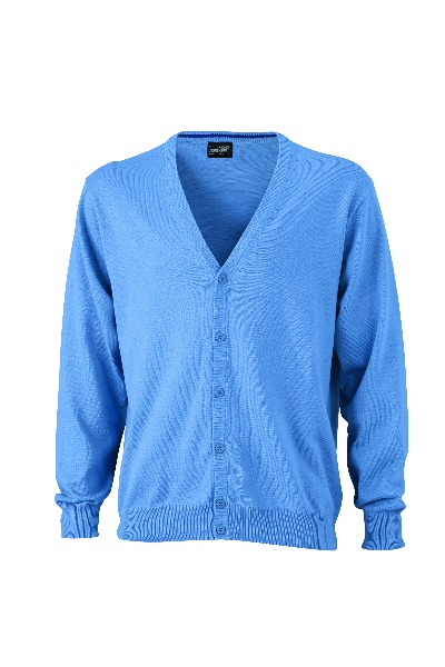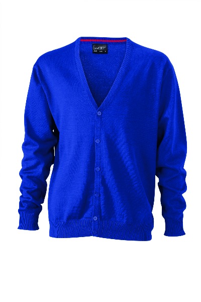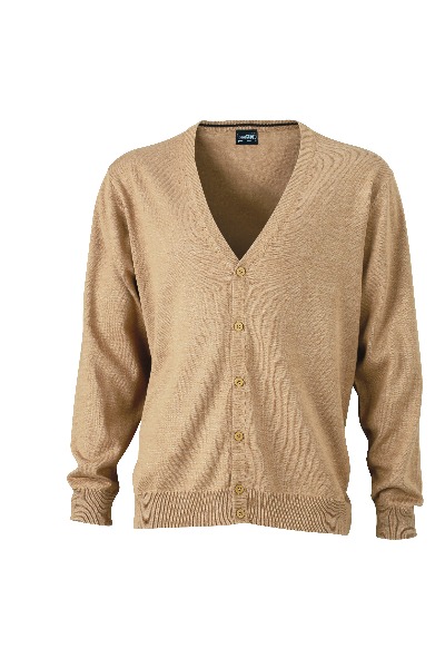 Gilet Homme. Manches longues. Col V. Fermeture boutonn‚e. Tissage tricot. Coupe droite. 100 % coton bross‚. 260 gr / mý.