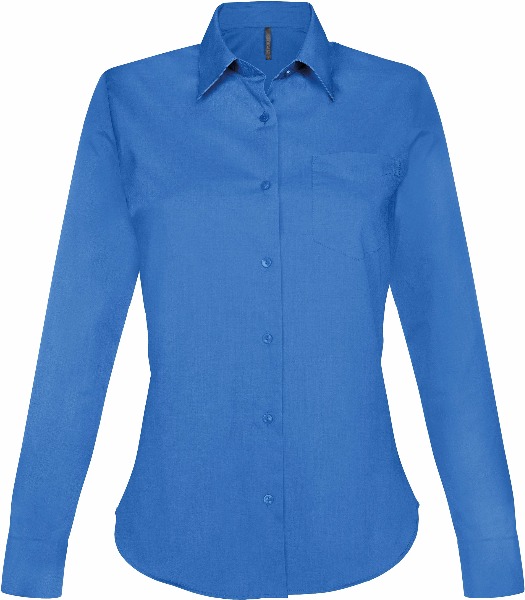 65% polyester / 35% coton popeline. Entretien facile. Col non boutonné. Boutons ton sur ton. Poche poitrine côté gauche en V. Poignet réglable à angles arrondis avec patte de manche indéchirable. 1 bouton de rappel. Bas arrondi.