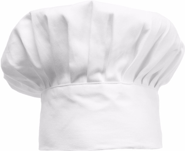 100% coton. Kit compos‚ d'une toque et d'un tablier. Toque de chef r‚glable … l'aide d'une bande auto-agrippante.