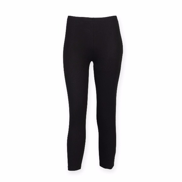96% coton / 4% élasthanne. Single Jersey. Pantalon legging 3/4 avec taille élastiquée. Ourlets double surpiqûre.