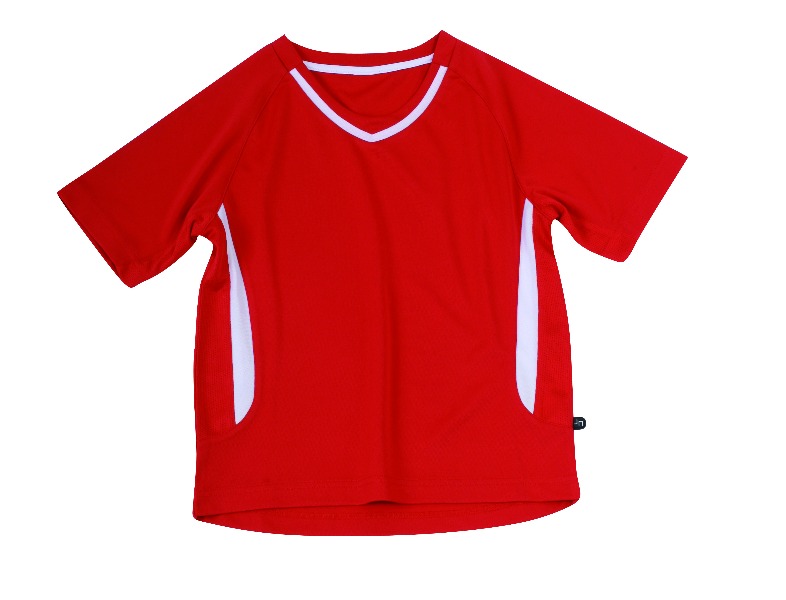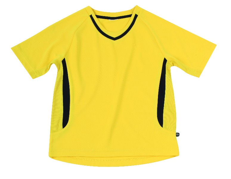 Maillot Sport Team Enfant. Manches courtes. Inserts contrastés. Col rond. 100% polyester. 140 gr/m². Topcool régule la transpiration et l'humidité .