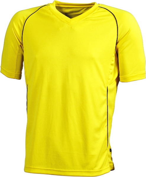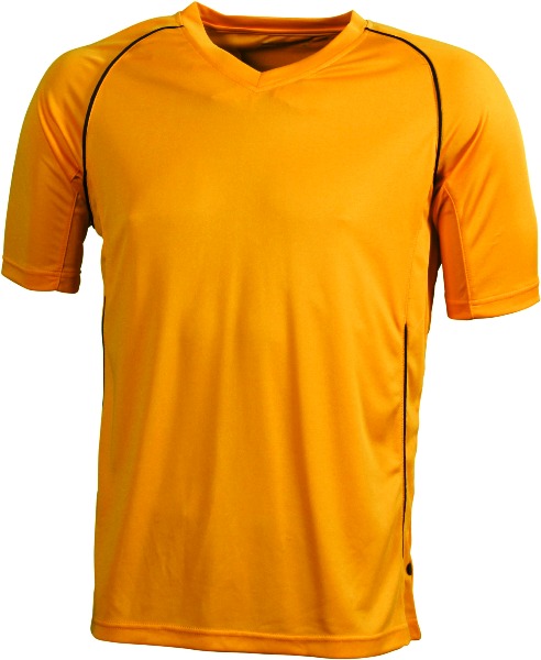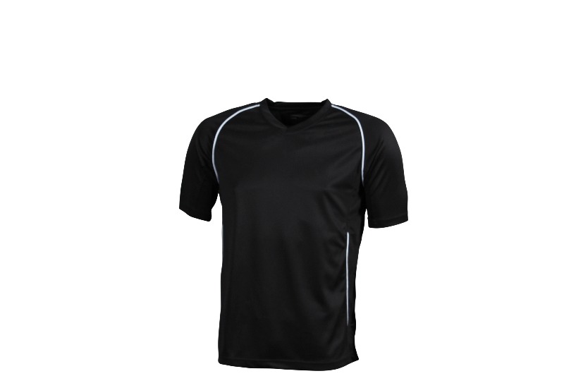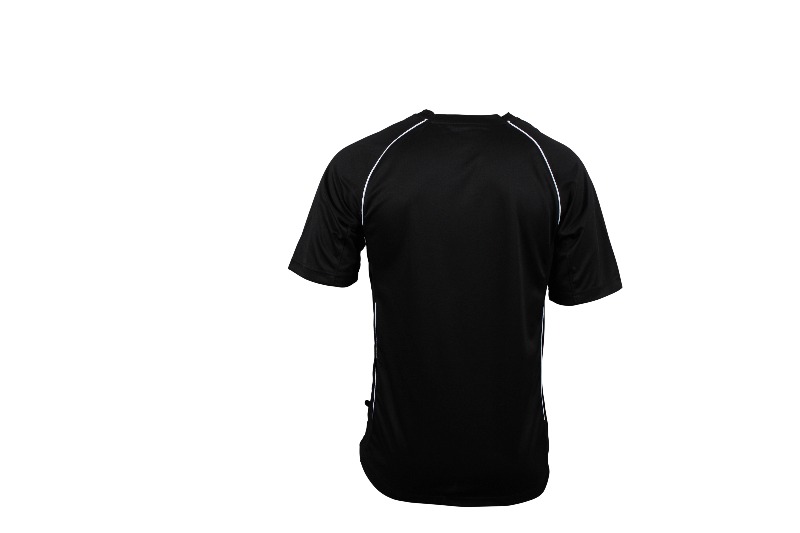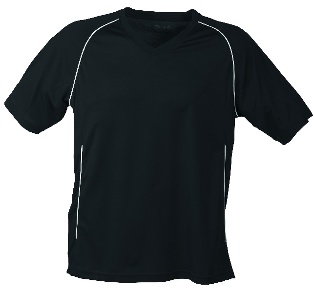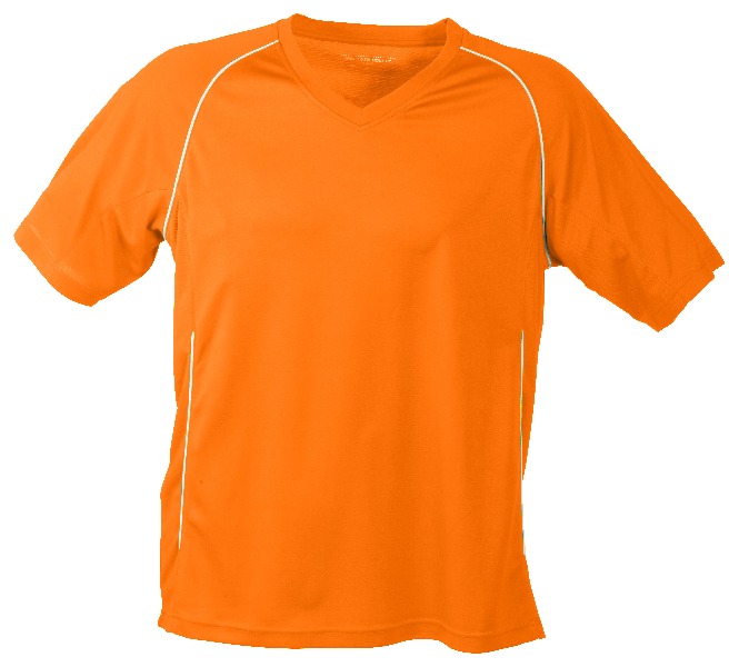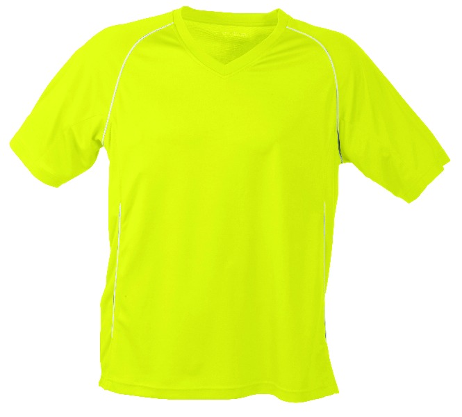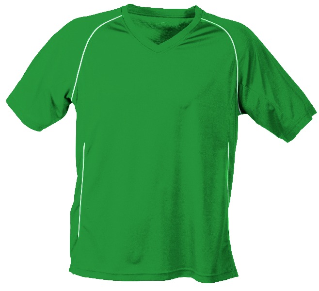 Maillot Sport Team Enfant. Manches courtes. Passepoils contrastés. Col V. 100% polyester. 135 gr/m². Respirant et séchage rapide.