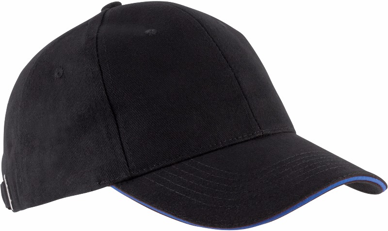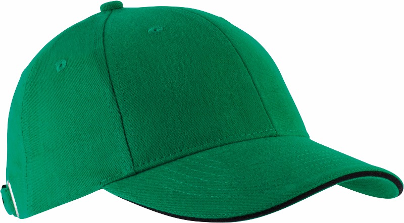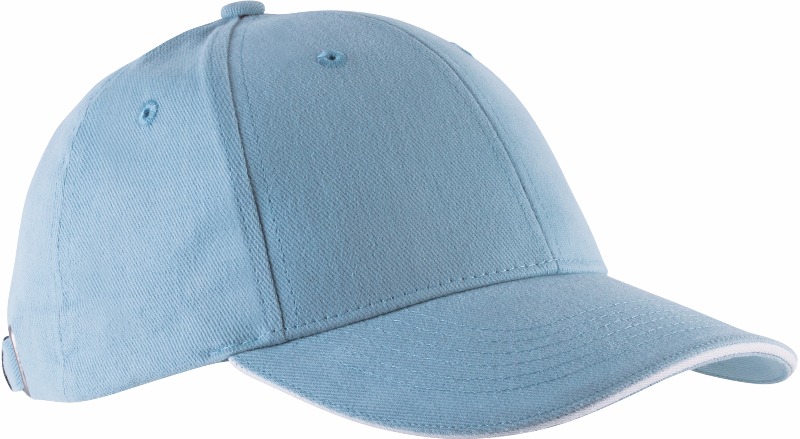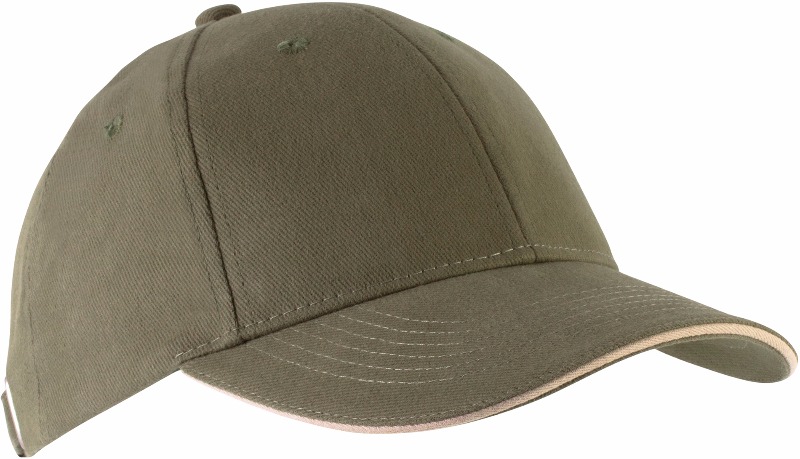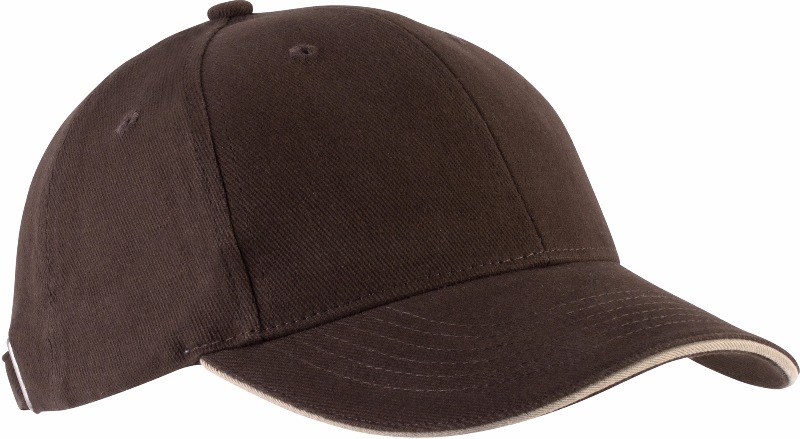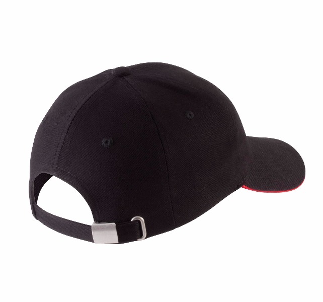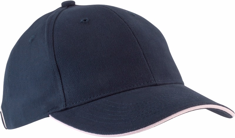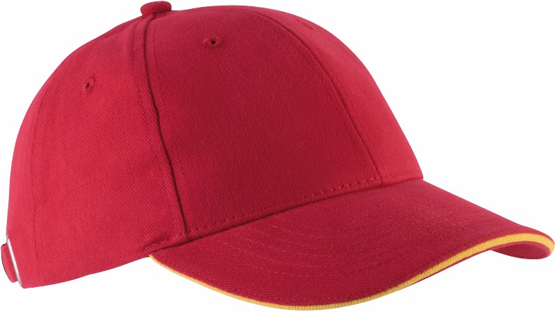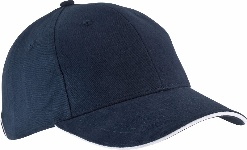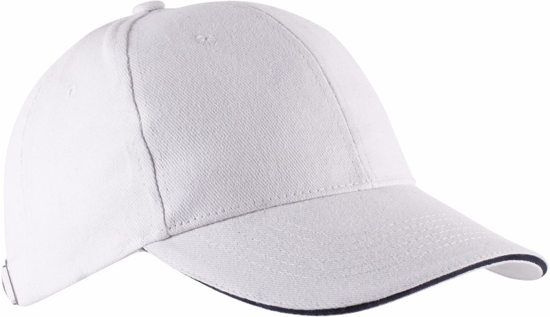 100% coton sergé brossé épais. Visière préformée. Tranche de la visière de couleur contrastée. Fermeture arrière réglable