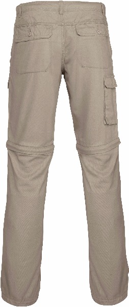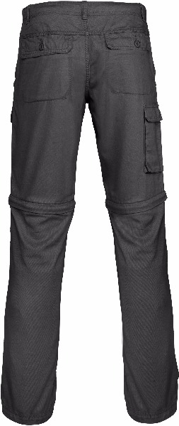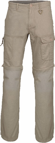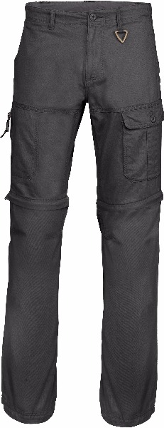 100% coton sergé. Lavage aux enzymes. Fermeture zippée YKK® avec bouton pression. 4 poches avant et 3 arrière. Bas de pantalon détachable par zip pour une version bermuda. Anneau plastique pour mousqueton à la ceinture.