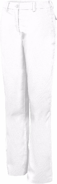 96% polyester / 4% élasthanne. Matière souple et déperlante pour un confort optimal. Coupe élégante et ajustée. Ceinture avec passants, 2 poches profondes côtés et 2 poches arrière passepoilées avec rabat.