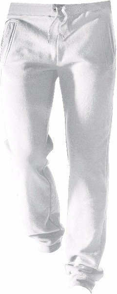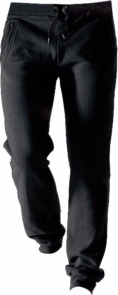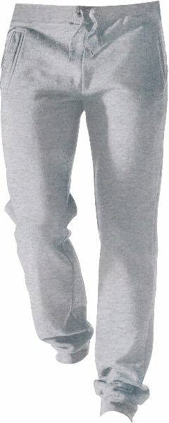 80% coton peign‚ / 20% polyester. Molleton gratt‚. 2 poches c“t‚s et 1 poche arriŠre plaqu‚e. Large bord-c“te et lien de serrage … la taille. Finition bord-c“te 1x1 bas de jambe.