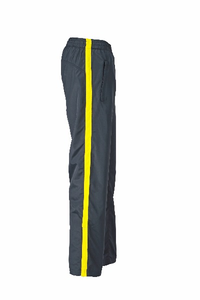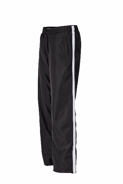 Pantalon jogging Femme. 2 poches latérales. Taille élastiquée avec cordon de serrage. Bas de jambe zippé. 100 % polyester.