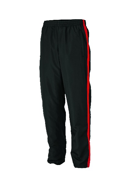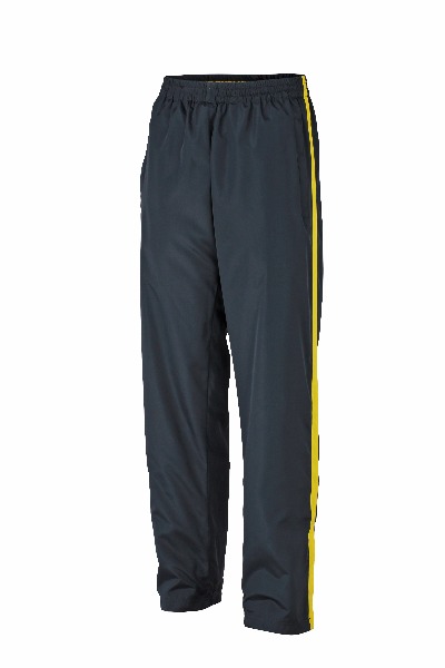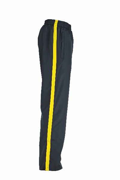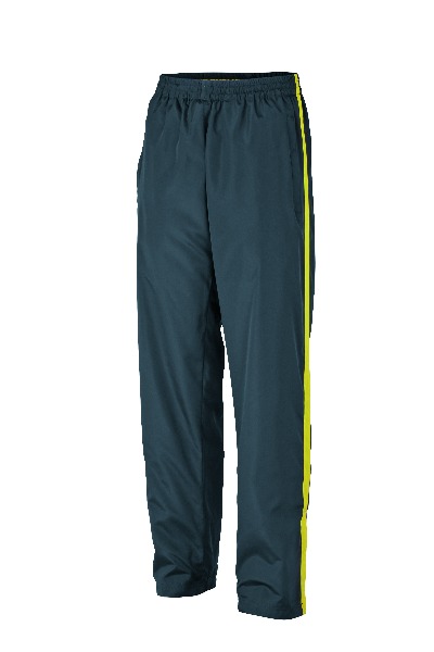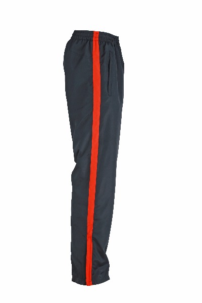 Pantalon jogging Homme. 2 poches latérales. Taille élastiquée avec cordon de serrage. Bas de jambe zippé. 100 % polyester.