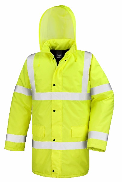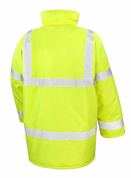 Extérieur : polyester Oxford 300D enduit PU. Isolation : rembourrage Polar-Therm matelassé. Doublure 100% polyester 190T damassé en losanges. EN ISO 20471:2013 catégorie 3 EN 343:2003+A1:2007 cat. 3 niv. 1. Coutures thermocollées étanches. Excellente protection thermique. Capuche dissimulée escamotable avec cordon de serrage. Fermeture zippée bidirectionnelle hautement résistante sur toute la hauteur avec rabat de protection. 2 grandes poches latérales avec rabat de protection. 1 poche intérieure. Bande de sécurité de 50mm piquée.