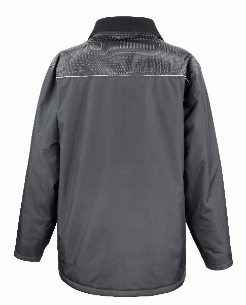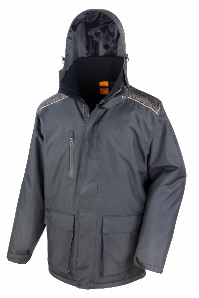 Extérieur : 300D 100% polyester oxford enduit PVC. Doublure : 210T 100% polyester taffeta. Isolation : rembourrage 100% polyester. Imperméable à 2000mm. Coupe-vent. Doublure damassée en losanges. Fermeture zippée 2 directions à l'avant avec rabat de protection fermé par Velcro® et boutons pression. Col doublé en tricot. Capuche ajustable et amovible par zip. Empiècements contrastés en tissu Dobby. Passepoil réfléchissant. Multi poches : poches avant plaquées à fermeture Velcro®, poches latérales chauffe-mains, poche poitrine intérieure. Ourlet réglable par cordon de serrage. Poignets côtelés avec réglage par fermeture Velcro®. Tirettes amovibles sur toutes les fermetures zippées (4 coloris de tirette fournis).