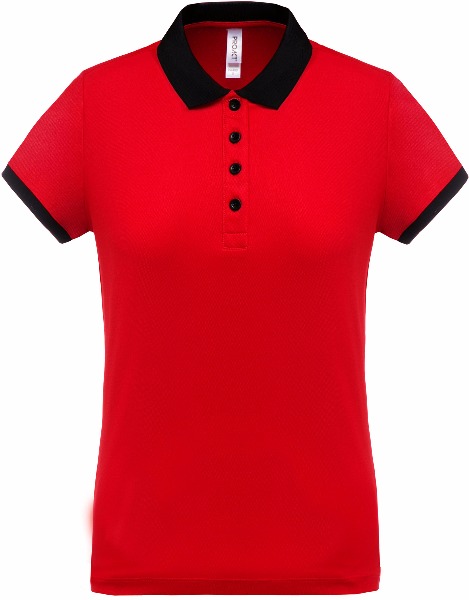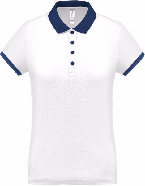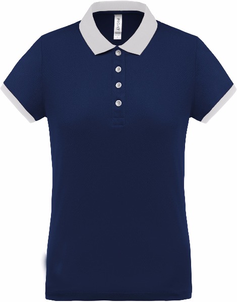 100% polyester piqué Cool Plus®. Tissu à séchage rapide. Coupe cintrée et look moderne. Col et bas de manche en bord-côte contrasté. Patte de boutonnage 4 boutons contrastés. Fentes latérales.