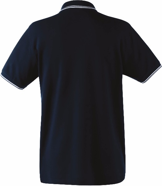 100% coton piqué. Patte avec trois boutons ton sur ton. Bande de propreté col contrastée. Deux rayures contrastées au col et aux manches.