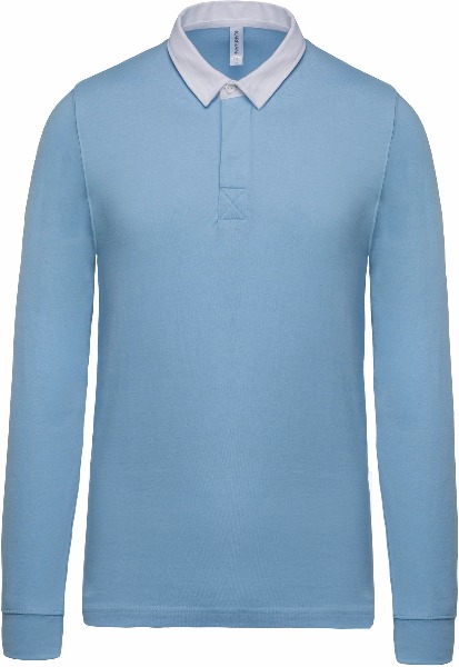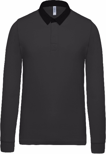 100% coton peigné jersey pré-rétréci. Col en coton sergé contrasté blanc (sauf coloris Red et Dark Grey avec col noir). Patte 3 boutons. Poignets en côtes 1x1. Bande de propreté chevron intérieur col et fentes latérales.