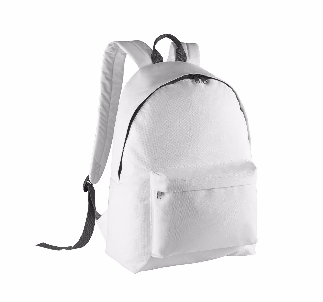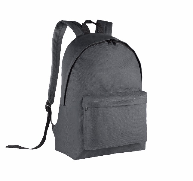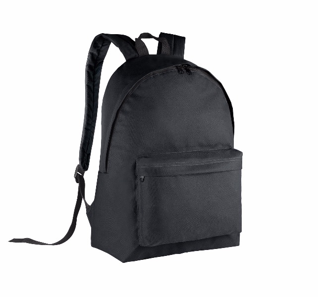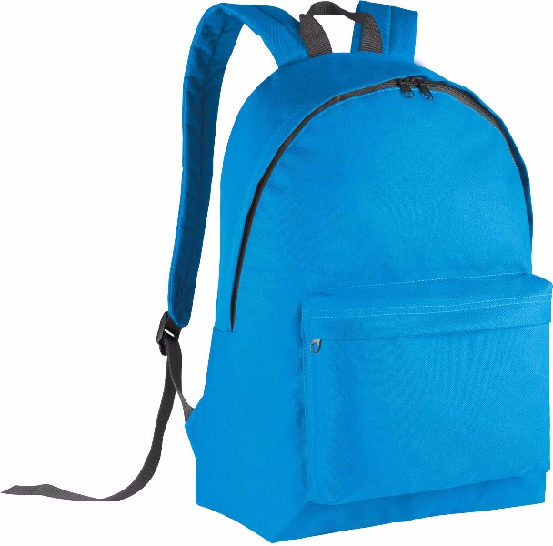 Sac à dos en polyester 600D enduction PVC, poche zippée devant, dos matelassé, bretelles ergonomiques ajustables. Zips SBS. Même modèle que KI0130 en version junior.