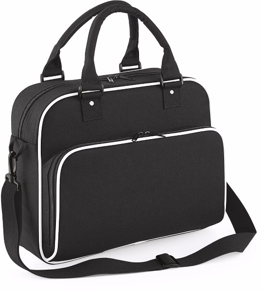 Polyester 600D, poignées faites du même tissu, bandoulière amovible ajustable, style rétro, renfort interne du fond, détails contrastés, compartiment principal avec fermeture zippée, poche frontale zippée, poche interne en maille filet.