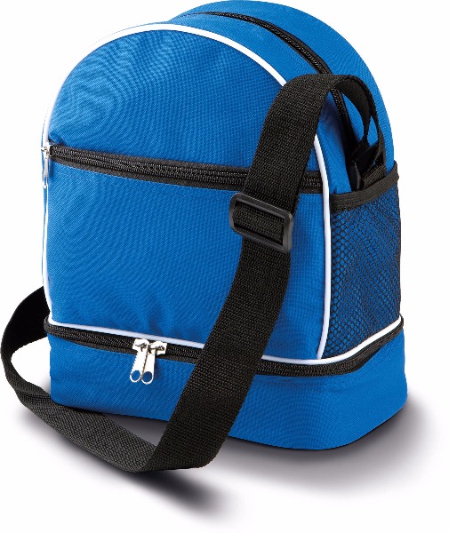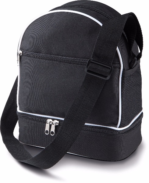Sac de pétanque en polyester 600D enduction PVC, compartiment avec mousse au fond du sac conçu pour ranger 3 boules, grande poche devant zippée, sangle d'épaule ajustable.