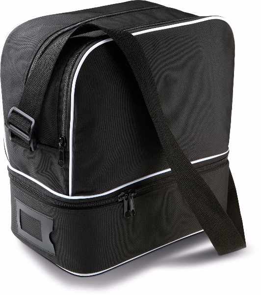 Grand sac de pétanque en polyester 900D enduction PVC, 2 compartiments, compartiment du bas avec mousse conçu pour ranger 6 boules, sangle d'épaule ajustable.