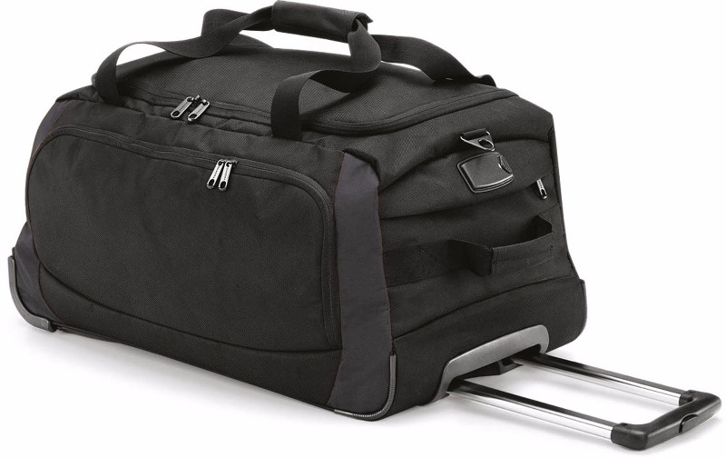 Polyester 1680D, poignée de traction double tube verrouillable et rétractable, roulettes integrées haute résistance, bandoulière amovible ajustable avec coussinet d'épaule, poignées matelassées, poignée de confort matelassée, porte-nom recouvrable, poche frontale zippée, poche latérale zippée, multiples poches internes. Poids du produit : 3, 48kg.