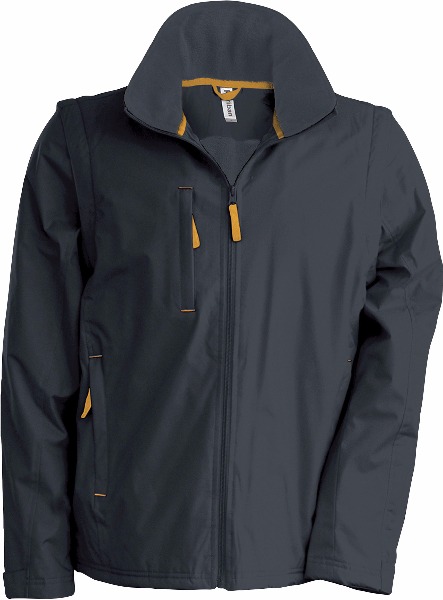 100% polyester avec enduction PVC. Doublure corps en polaire 100% polyester. Tissu souple. Fermeture zippée. 3 poches zippées. Manches amovibles zippées. Patte de serrage au bas des manches. Tirette du zip, tresse encolure et points d'arrêt contrastés. 3 poches intérieures (2 zippées et 1 poche pour le téléphone). Cordon de serrage intérieur contrasté au bas du vêtement. Capuche dans le col. Ouverture zip pour personnalisation.