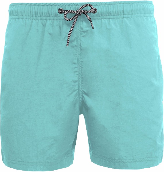 Extérieur : 100% polyamide 105g/m². Slip intégré en maille filet 100% polyester 65g/m². Doublure ceinture polycoton 80g/m². Tissu léger et à séchage rapide. Coupe mode. 2 poches latérales et 1 poche arrière avec oeillet, rabat et bande auto-agrippante. Ceinture intérieure fantaisie et élastiquée avec cordon de serrage.